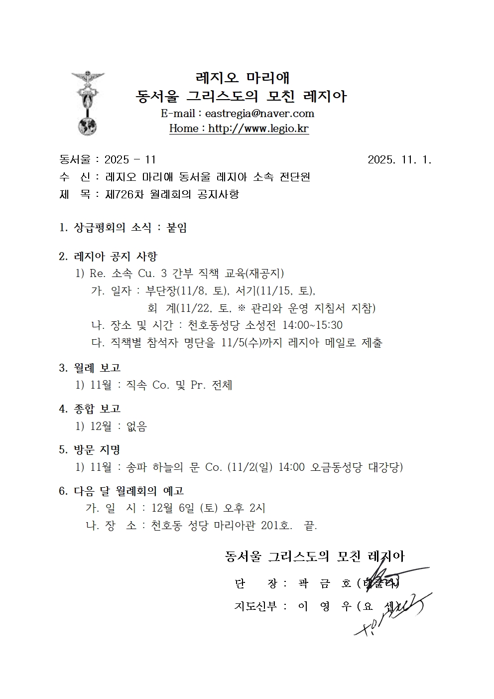 2025. 11. Re. 월례회의 공지사항 등록일2025.10.31 조회수55 댓글 0댓글쓰기 댓글목록 등록된 댓글이 없습니다. 이전글 이전 글이 없습니다. 다음글 2025. 10. Re. 월례회의 공지사항 목록